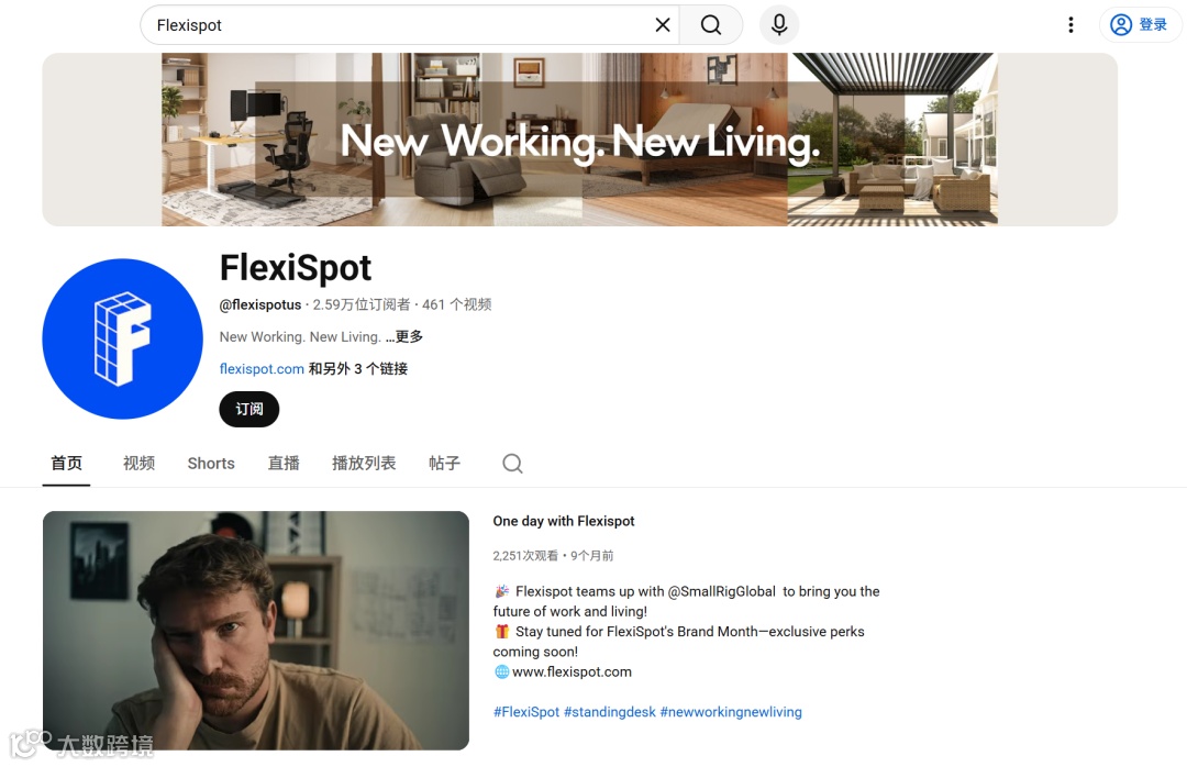 如果说TikTok是流量引爆核心,那YouTube就是品牌建立专业信任的关键阵地。这里的用户偏爱深度内容、看重专业性,Flexispot针对性布局官方认证账号,目前订阅者达2.59万。