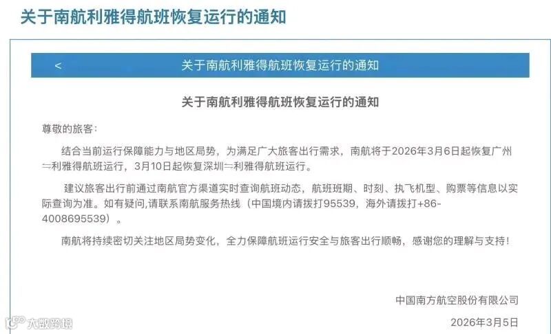 3. 我国多家航司陆续恢复部分至中东地区航班。
