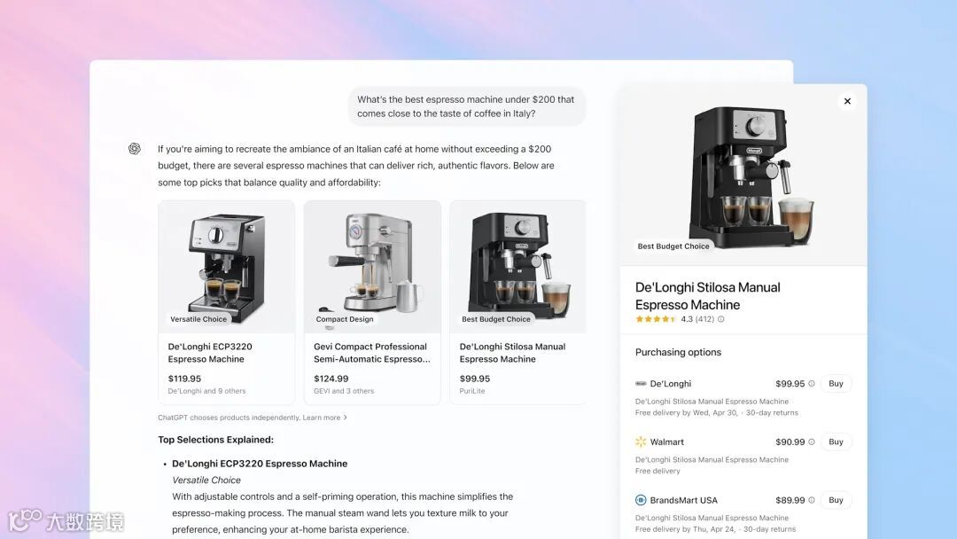 这意味着ChatGPT不再试图直接承接交易环节,而是重新聚焦于信息筛选、产品对比与决策辅助,回归“超级导购”本质。
