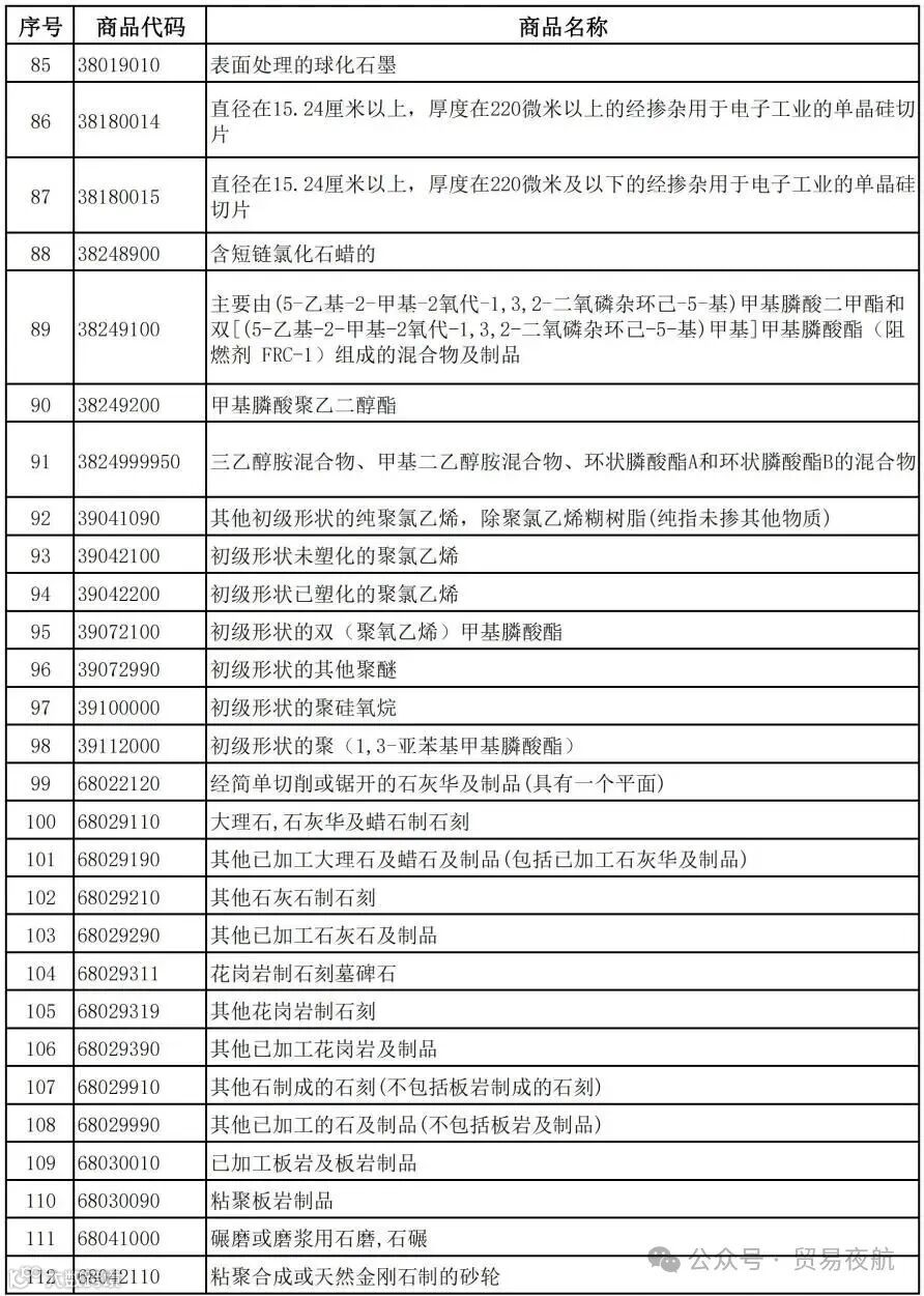 除光伏、电池外,以下行业产品亦受直接影响: