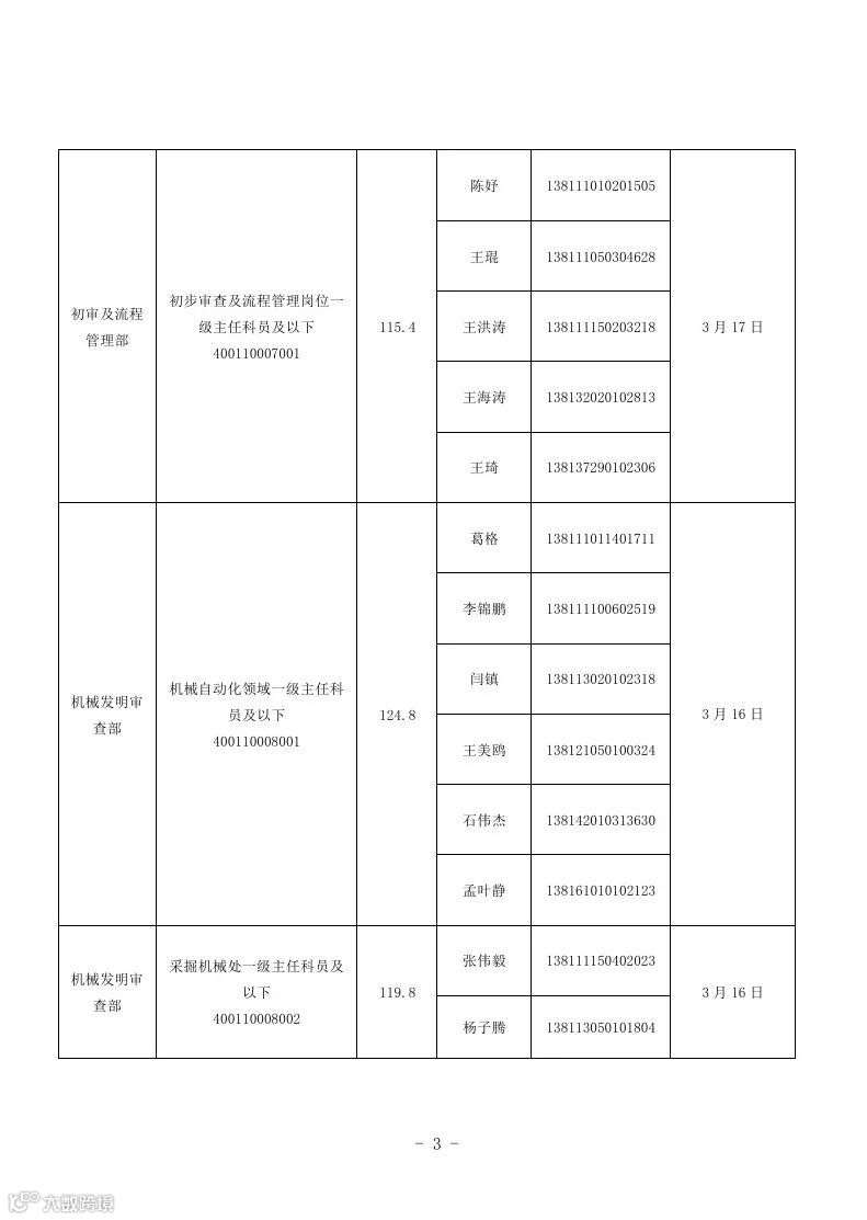 钲霖知识产权近日,国家知识产权局发布《2026年度考试录用公务员面试递补公告》,对部分职位因考生自愿放弃或未通过资格复审等原因产生的空缺名额,按笔试成绩从高到低顺序进行递补。