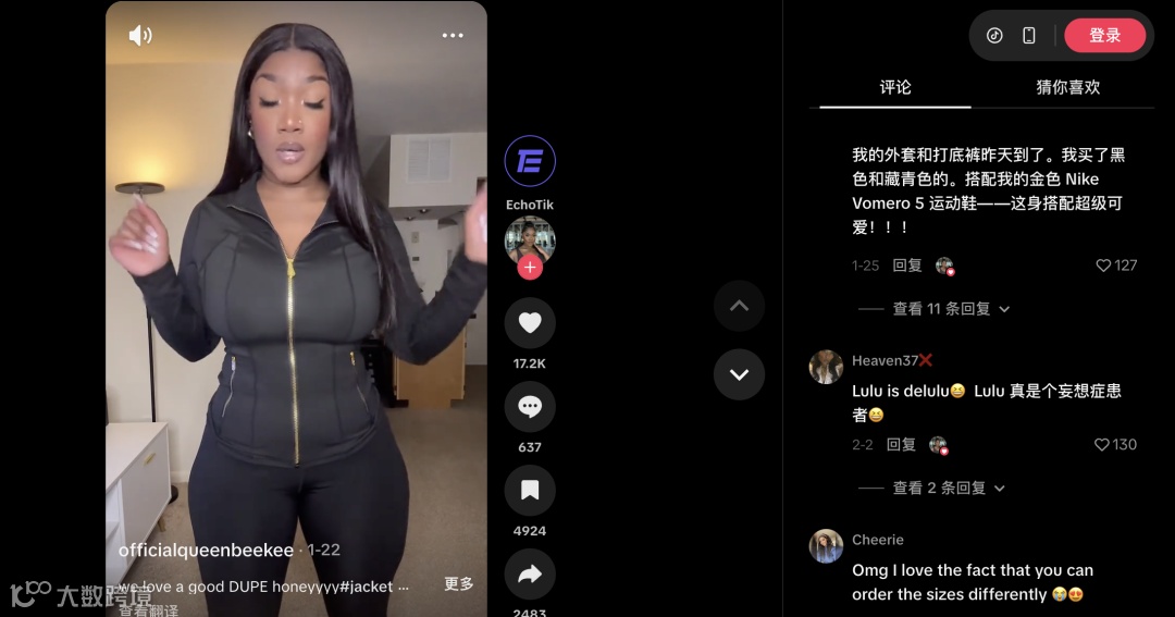 其中,美区博主Kiani.一条试穿测评视频获180万+播放,带动近2000单成交。其评论区高频出现“求链接”“完美平替”“我要所有颜色”等互动,印证用户对“高性价比替代品”的强烈认同。