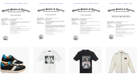 Steve McQueen 是 20 世纪六七十年代好莱坞极具影响力的动作影星,以硬汉形象被誉为 “冷酷之王”,其影视形象成为反权威与个人主义的经典符号。同时,他亦是专业赛车手,活跃于摩托车越野赛、汽车拉力赛等赛事,成就斐然。本次维权为批量打击未经授权使用 Steve McQueen 相关商标的跨境卖家,涉案卖家67 家,涉及 4 枚商标,商标号:3934709、3864765、4142859、3948067,覆盖第 9 类(太阳镜)、第 16 类(海报)、第 25 类(鞋帽服饰)、第 28 类(玩具车辆)等品类。