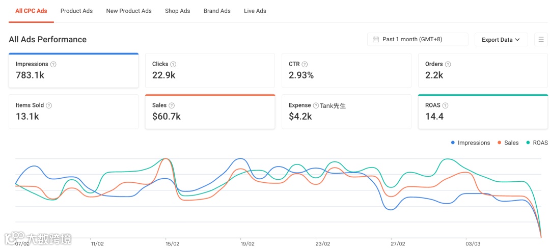 过去一个月广告总产出是6万新币,而店铺总销售额只有9万新币。广告GMV/店铺GMV*100%=66.6%。将近7成的订单是由广告产生,这肯定不正常!
