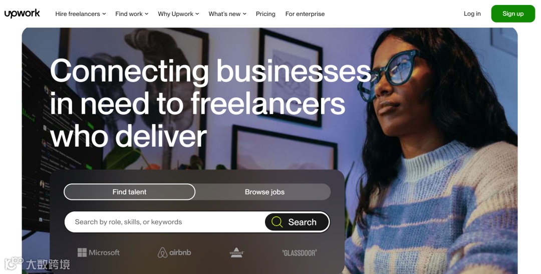 Upwork定位为“远程办公全场景平台”,核心服务涵盖软件开发、UI/UX设计、文案撰写、翻译、营销运营等,是目前用户规模最大、类目最广的自由职业平台之一。