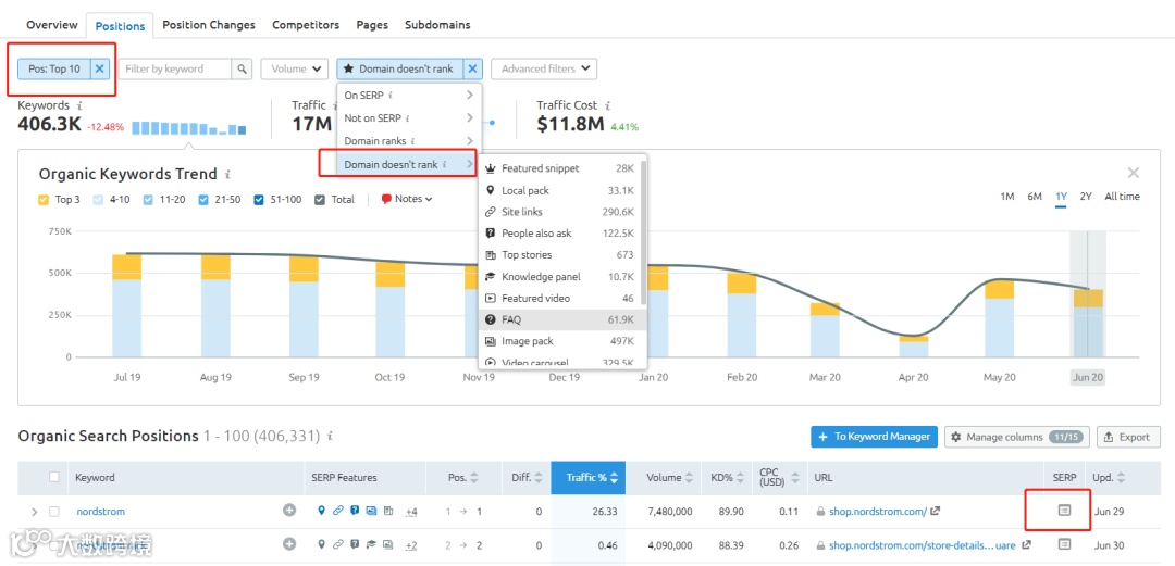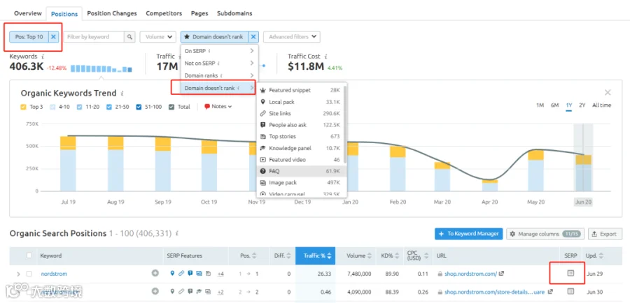 2.使用SEMrush发现SERP Features机会