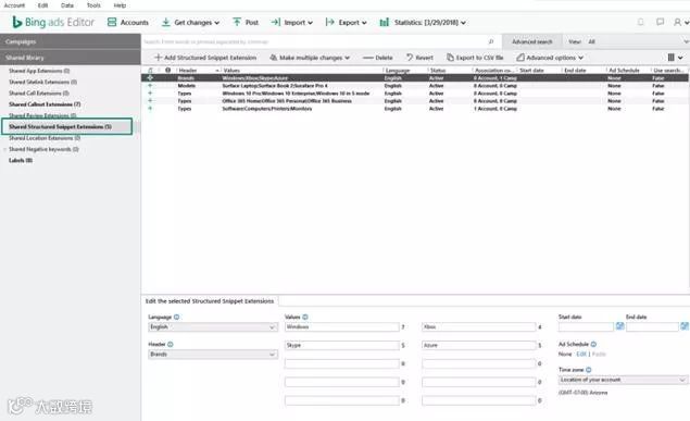 第二,在Windows上增加了批量结构化摘要管理功能,结构化摘要可作为文字广告中的附加工具可以让广告商可以创建类别列表。与标签一样,现在在Shared Library中可以创建和管理结构化摘要扩展程序,现在只支持Windows但之后将会支持Mac: