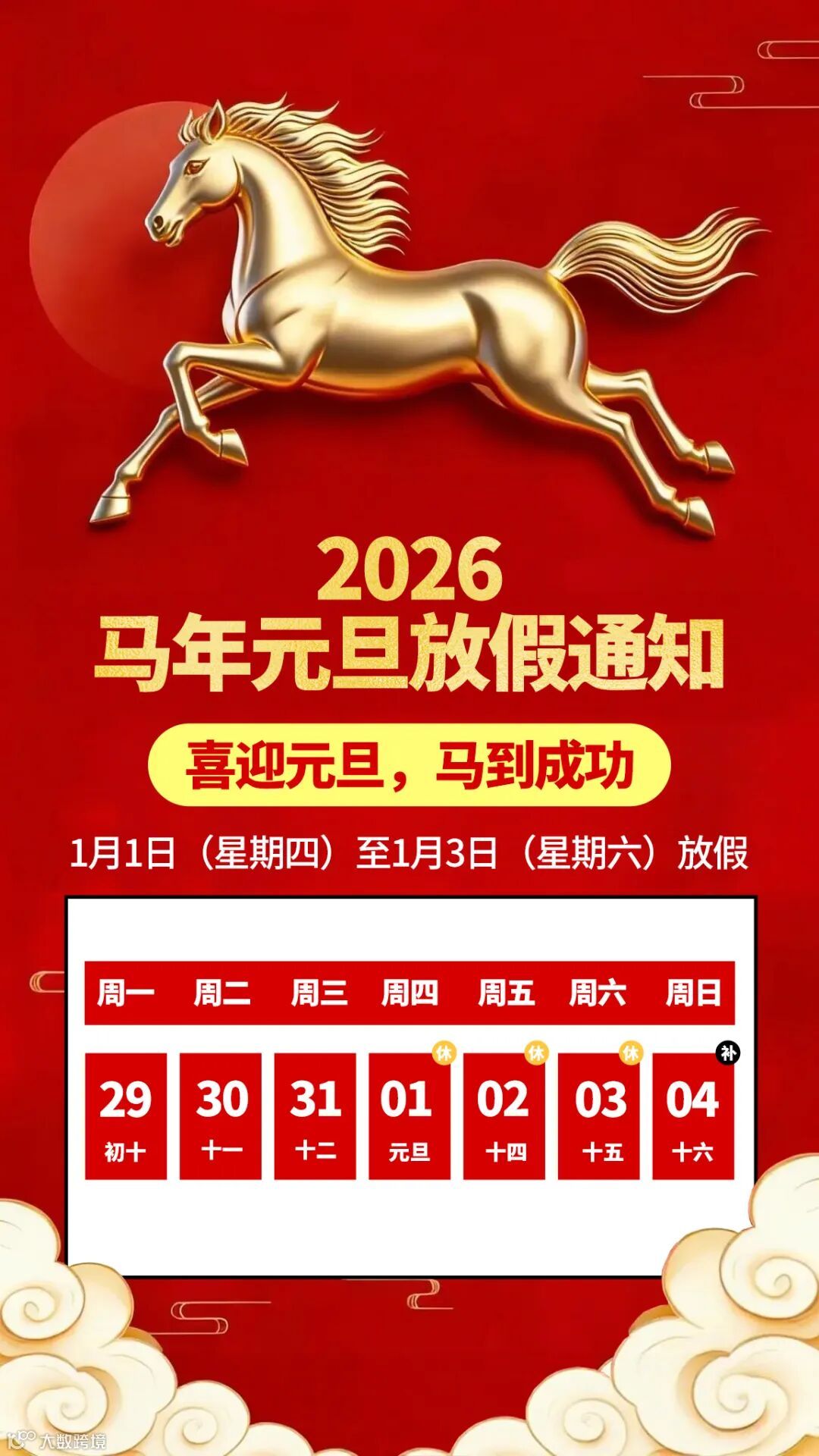 我司2026元旦节1月1日-1月3日放假3天,
