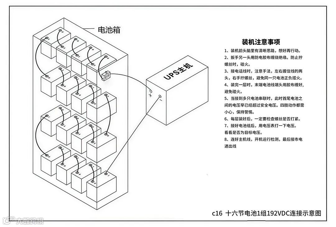 一组 十六节 192VDC电池组接线 四层 C16电池柜