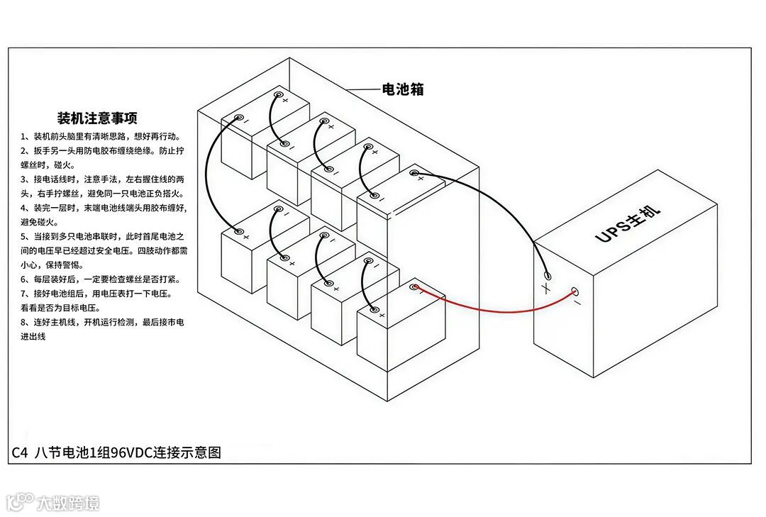 一组 八节 96VDC电池组接线 两层 C8电池柜