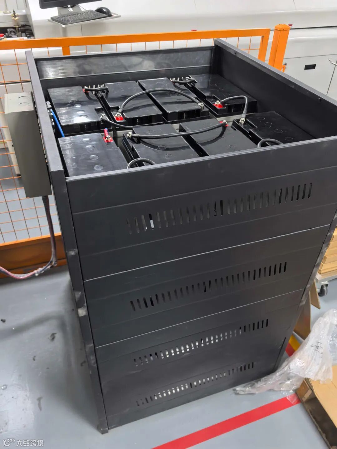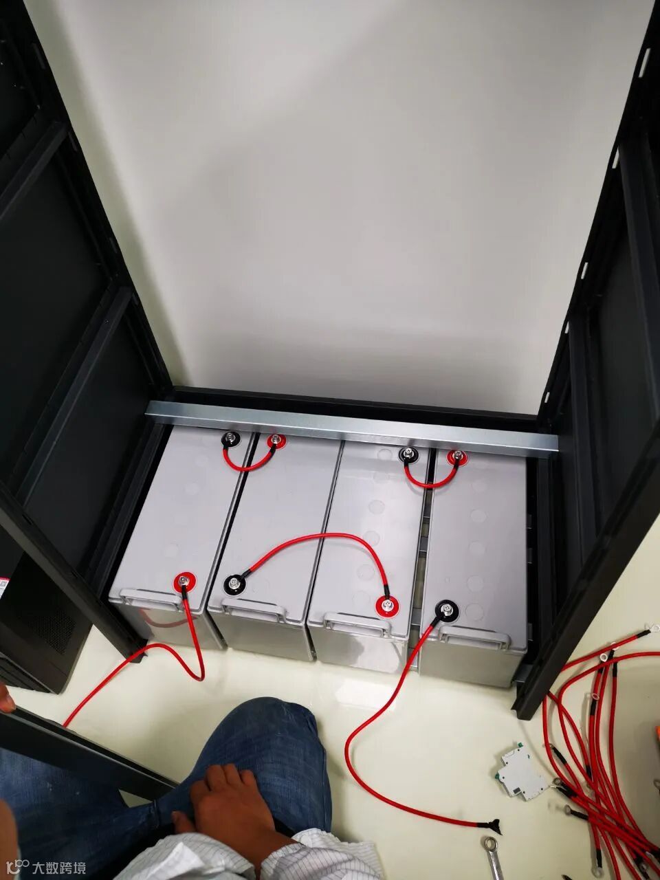 8、电池组电池无误,符合UPS电源主机要求后,再连入主机线开机运行检测,最后再接市电进出线。