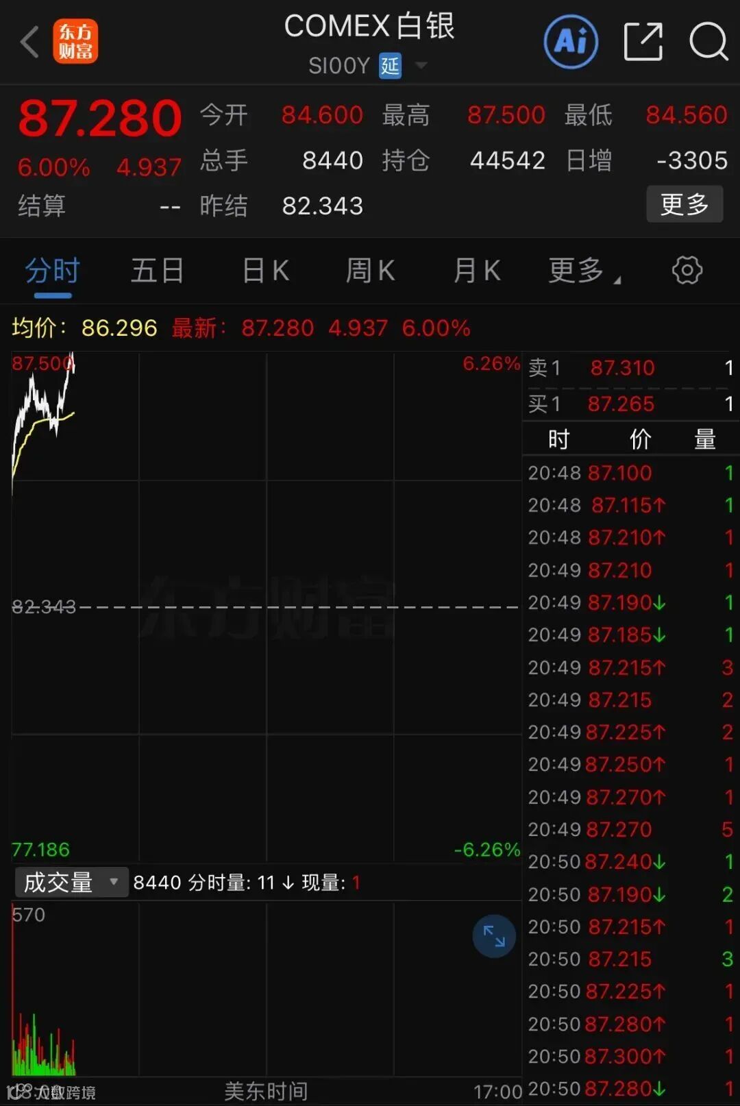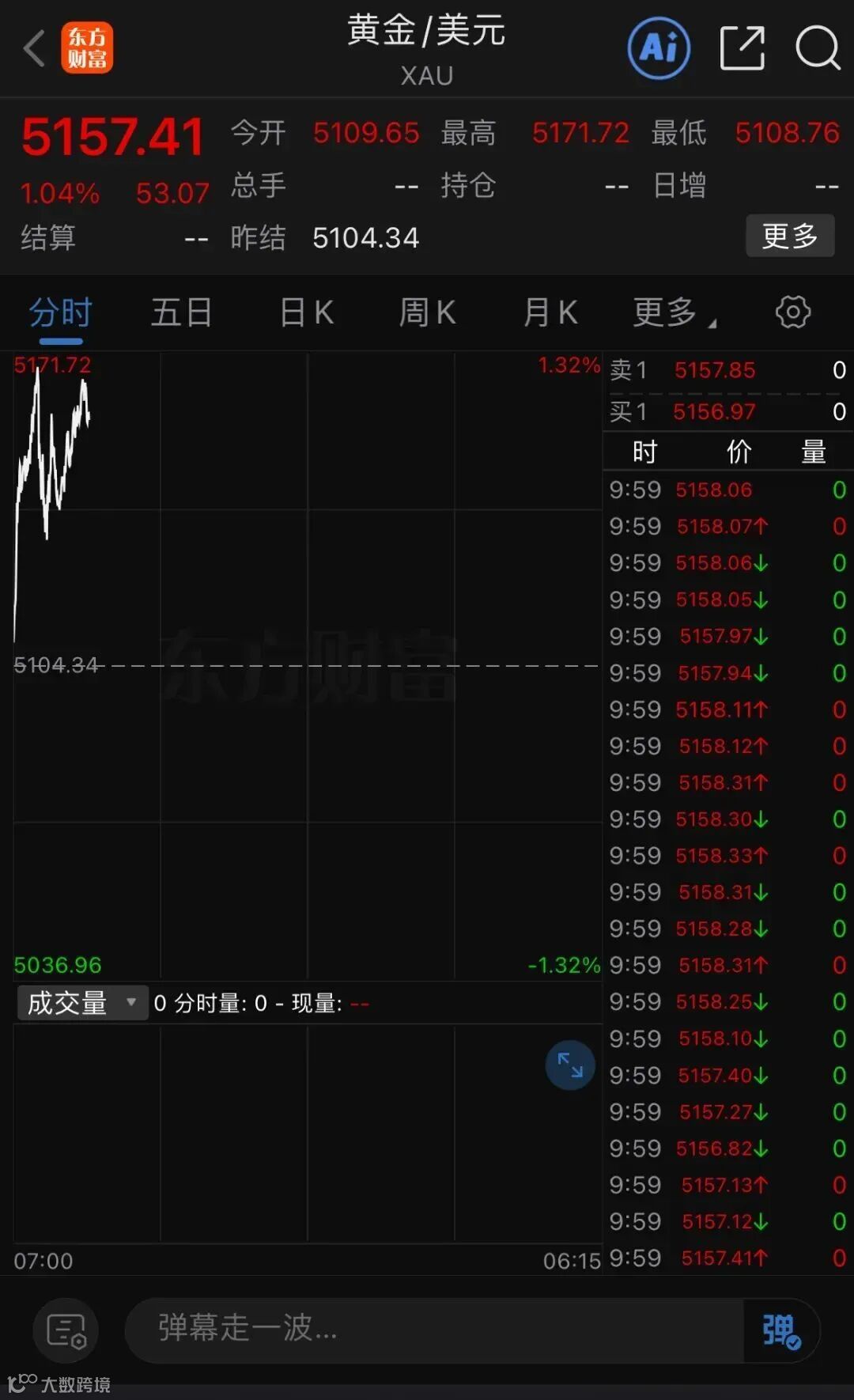 现货黄金向上突破5100美元,日内涨超1%。COMEX白银涨6%,升破87美元。