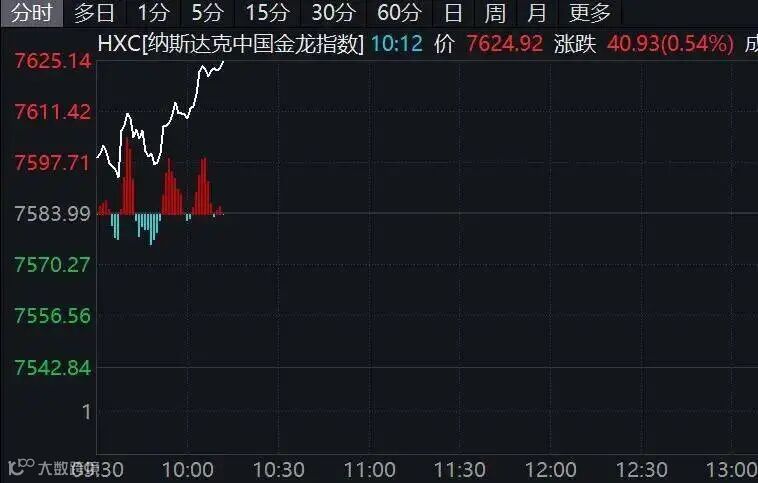 热门中概股上涨居多,纳斯达克中国金龙指数小幅上涨。霸王茶姬涨超3%,百度集团、阿里巴巴、蔚来涨超1%;金山云跌超1%。
