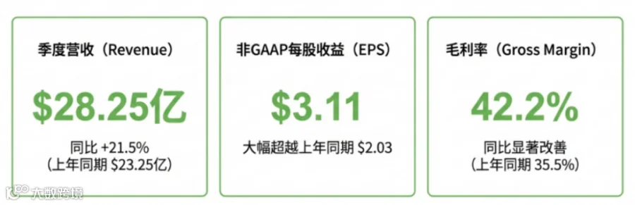 财报还显示,公司预计第三财季营收为29亿美元(上下浮动1亿美元),高于分析师预期的27.7亿美元。调整后每股收益预计为3.40美元(上下浮动20美分),同样超过市场预期的2.96美元。