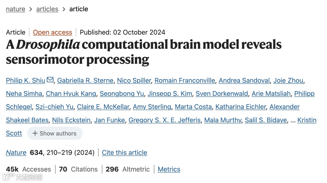 2024年10月,《自然》杂志同期刊发九篇论文,正式公布成年黑腹果蝇(Drosophila melanogaster)完整大脑连接组。该成果由FlyWire联盟主导,普林斯顿大学Mala Murthy与Sebastian Seung为关键科学家。