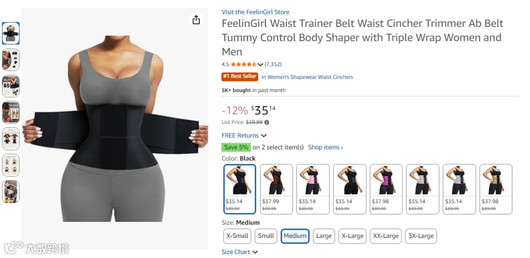 其TikTok美区三家小店周销售额均达十万美元级别;主力店铺周销百万美元。在亚马逊,FeelinGirl常年稳居BS榜,塑身衣、塑身腰带、功能性文胸等均为同品类热销单品。