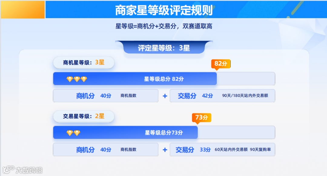 简单理解: 如果你新品爆单多但复购少,就主攻商机赛道;如果你老客户返单多,就主攻交易赛道。系统会自动选你得分高的那条路给你定星级。