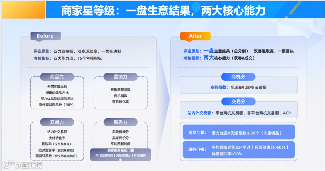底层逻辑就一点:提高买家平台的购物体验和决策效率。买家受够了点进高星级店铺,却发现产品粗糙、回复慢、交易没保障。这种糟糕体验会直接导致买家流失。