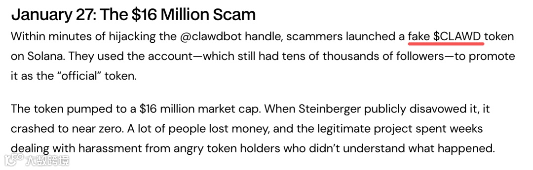 有人发行名为$CLAWD的代币,并利用项目热度进行炒作,市值一度达到约1600万美元。