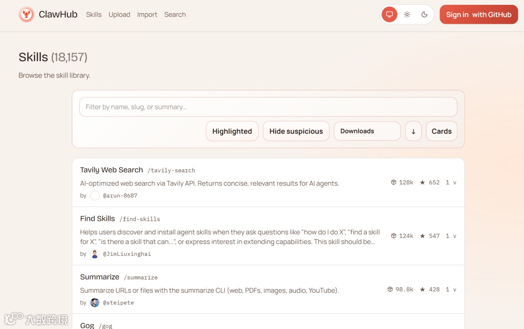 网址:https://clawhub.ai/skills?sort=downloads
