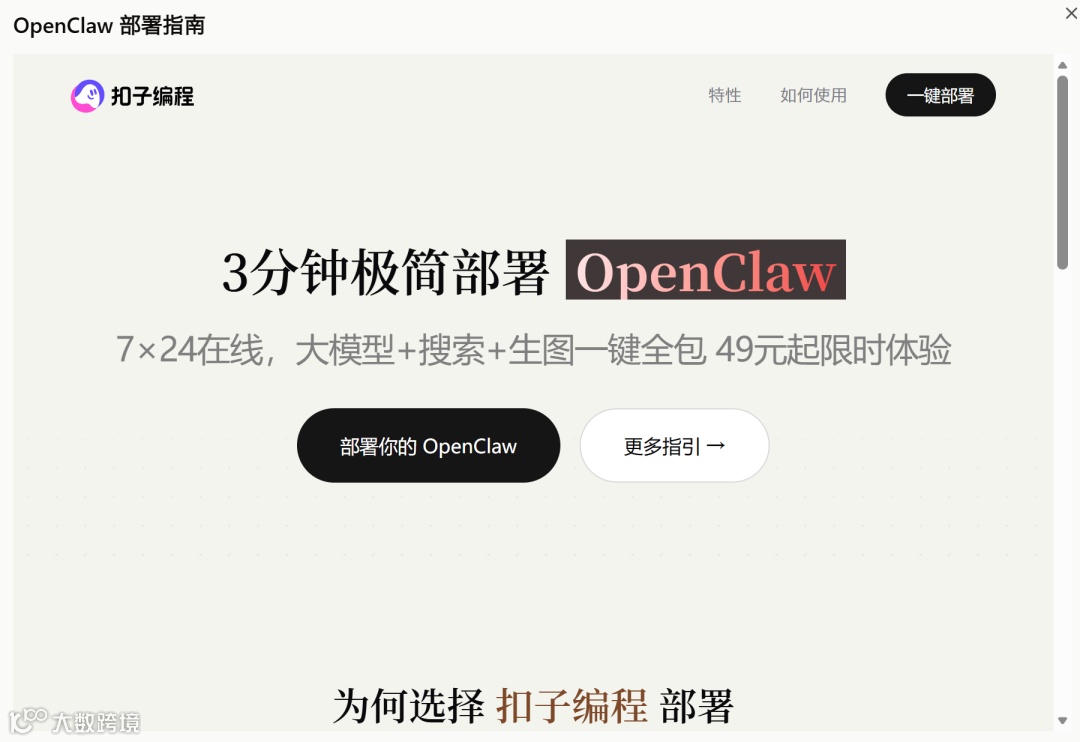 安装逻辑:直接访问 openclaw.ai,通过官方自动化脚本一键部署。