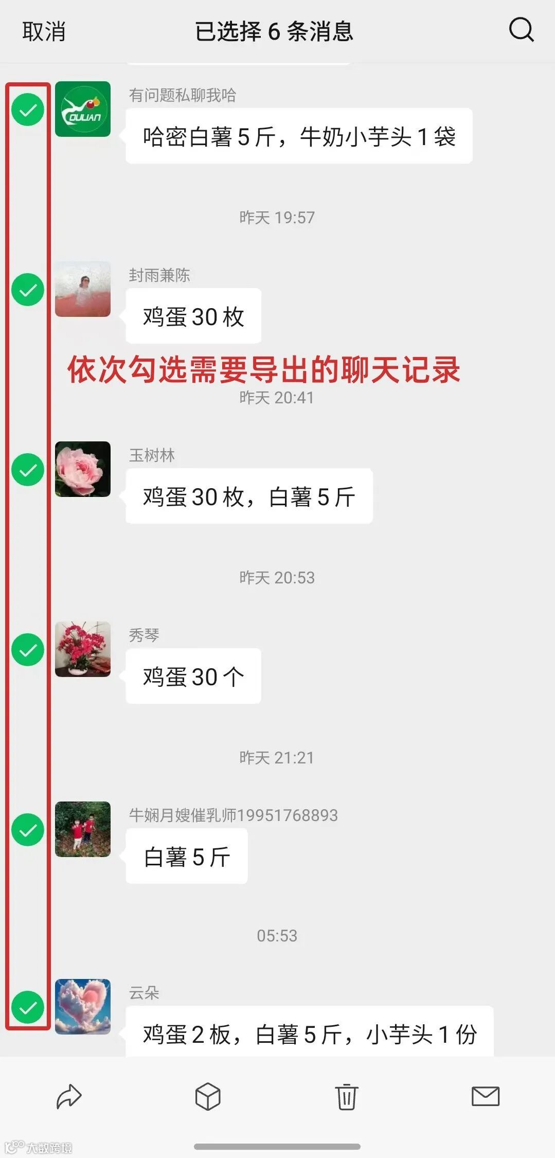 此时你会发现每条信息左侧都出现了一个小圆圈,依次勾选你需要导出的所有聊天记录。