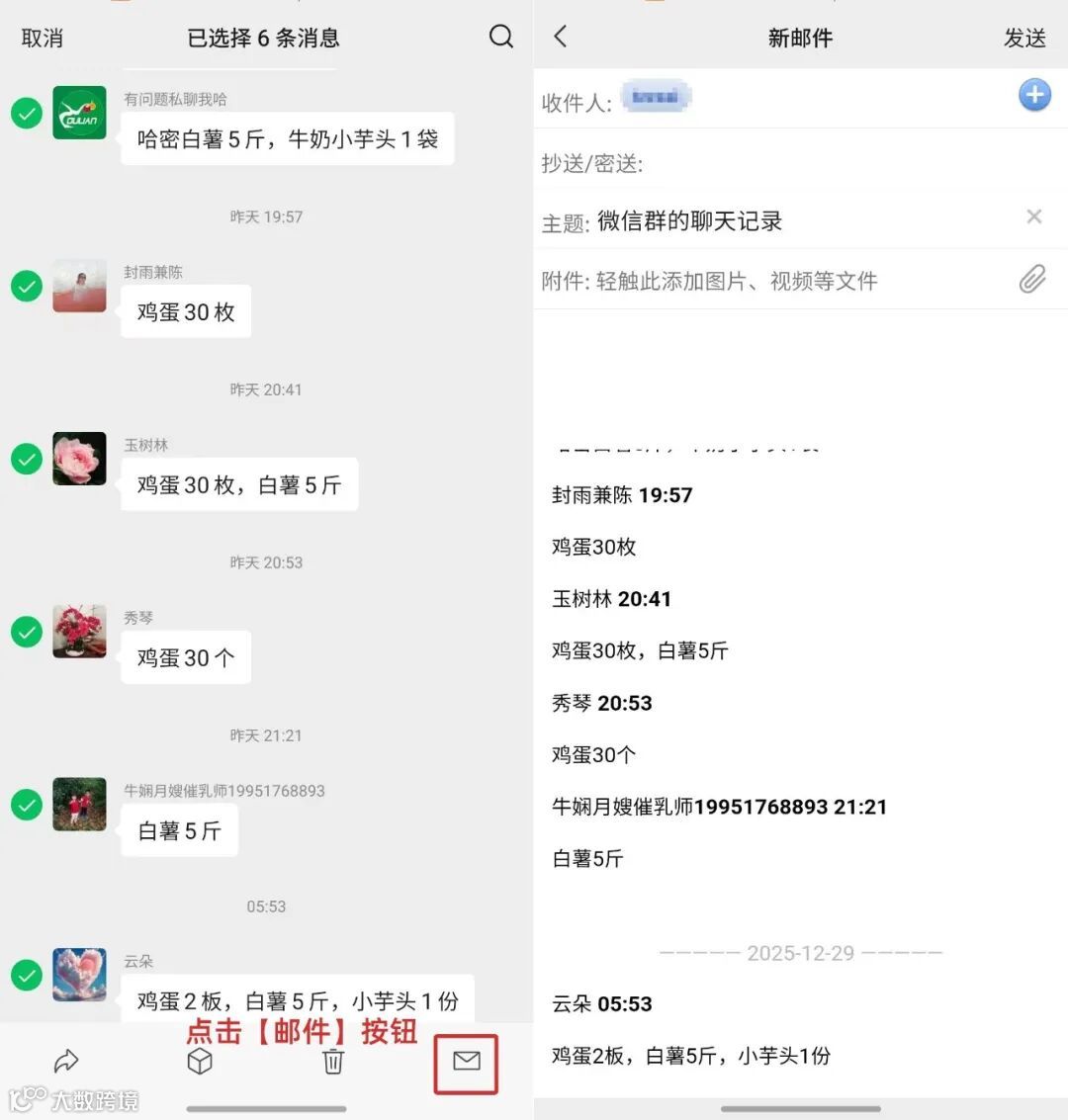 会弹出一个发送邮件的弹窗,微信会将你勾选的所有聊天内容、发言人、发言时间,全部整整齐齐地汇总在一个邮件撰写窗口里!