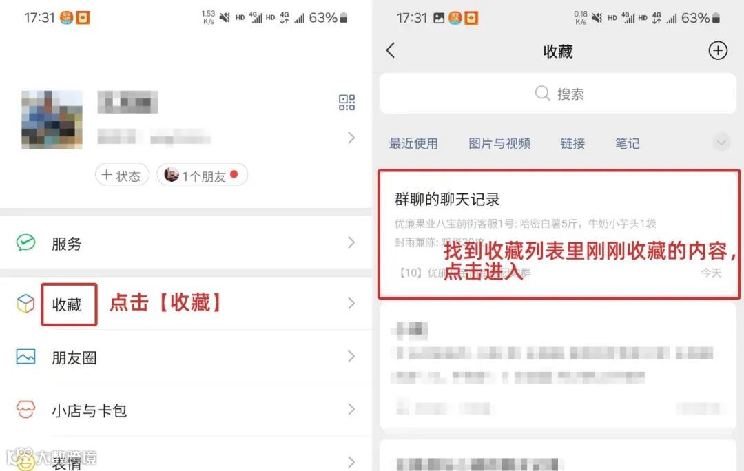 点击【收藏】,找到收藏列表里刚刚收藏的内容,点击进入。
