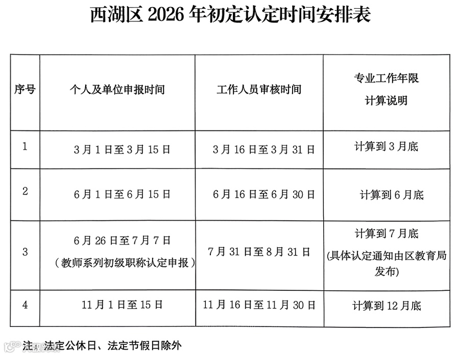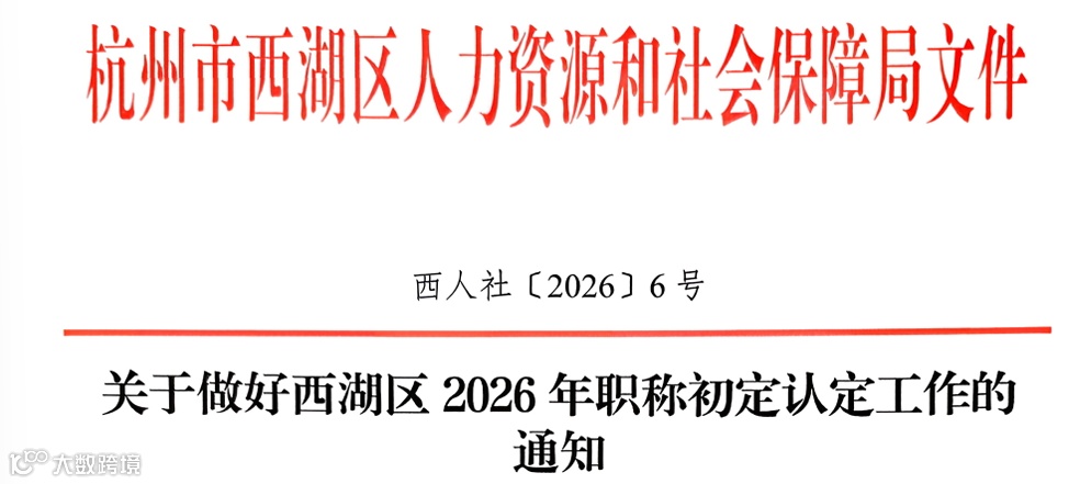 近日,杭州市西湖区发布《关于做好西湖区2026年初定认定职称工作的通知》,对26年度西湖区职称初定认定工作做出相关规定安排。