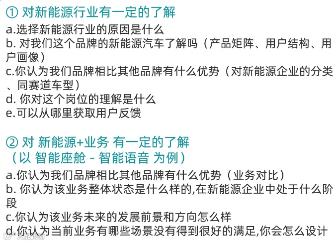 比如项目类、场景类、基础知识考察等,企业重点会考察学生对新能源行业有一定的了解,以及对 新能源+业务有一定的了解。