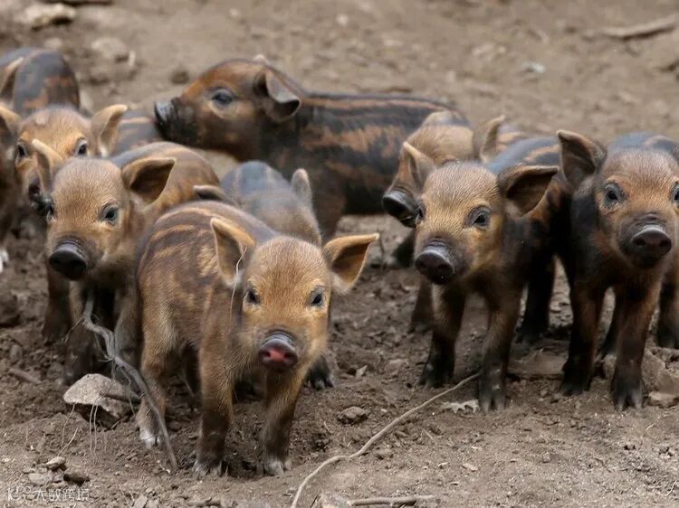 到了第三代“孙子辈”杂交技术突破了,黑猪与森林里的纯种野猪杂交后,再与国外引进的猪种进行三元杂交。棕色带白花,保留25%的野猪基因,继承三种猪的优点。