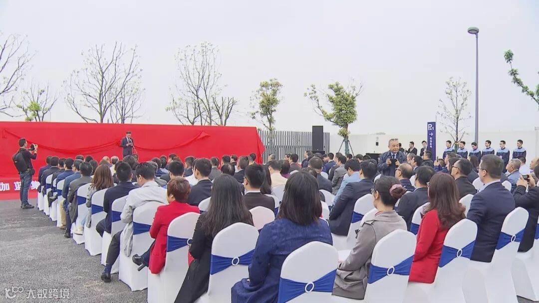 投产仪式现场,区委书记庄木弟和伽蓝集团董事长郑春影等共同为新厂区厂牌揭幕,并参观了新工厂的部分生产车间和产品展示区域。