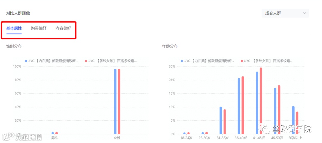 在切款过程中,可通过“抖音电商罗盘”商品人群画像功能对两款产品的人群差异进行详细对比。重点关注: