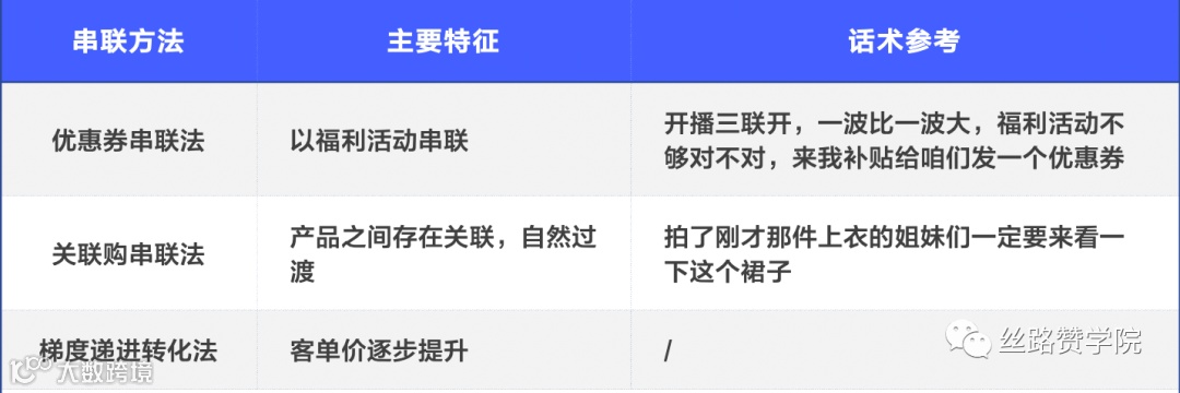 - 关联购物法:举例,“刚才拍了件上衣的姐妹们,一定要来看一下这件裙子。”