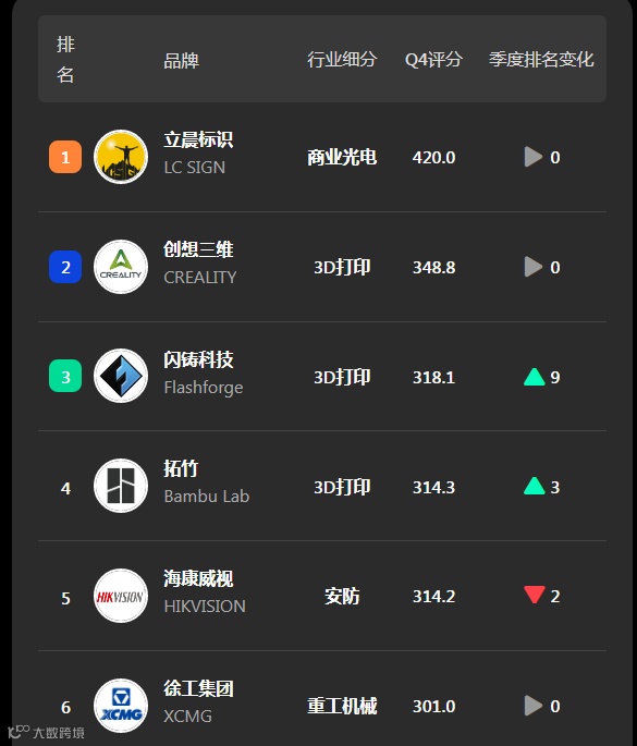 (2025Q4Brandcs智能制造类出海品牌社媒影响力榜单)