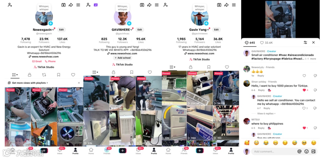 山东的某大型工业设备工厂,做TikTok以来,不少视频达到百万播放,收到不少询盘,却没有成交。与之相反,来自义乌的某团队,利用TikTok做日用百货外贸批发,团队粉丝百万,一天上百询盘,养活了20人团队。