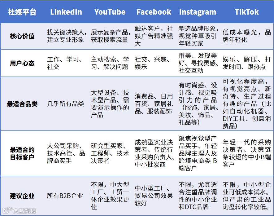 主流的营销方式是展会、B2B网站和独立站。前两者这两年投入产出比越来越低,独立站也离不开社媒引流。社媒营销仍然是较为空白的、成本较低的获客途径。