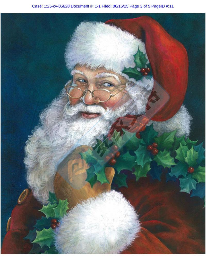 Keith律所再代理一起全新TRO维权案件,涉案版权号为:VA 2-423-350 和VA 2-423-136,两张来自艺术家 Elaine Kay Maier创作的圣诞老人肖像版权作品。圣诞老人作为版权维权案件中的常客, 一年四季均以不同的形态出现,及其高危,麦家支持建议跨境卖家在选品时尤其需要注意规避,尽量避开热门图片,避免踩坑TRO雷区!