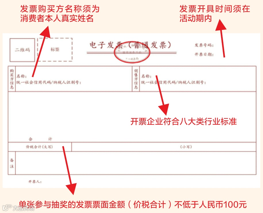 2.消费者上传发票需在活动时间内,单张发票只能参与一次抽奖活动。