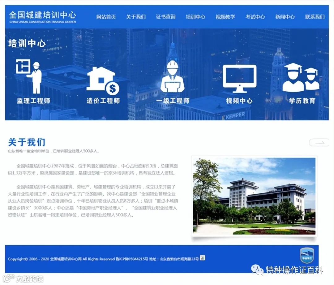 全国城建培训中心成立于1987年,位于山东烟台,原隶属国家建设部,是建设部唯一设在京外的直属培训机构,具有独立法人资格。作为建筑、房地产及城建管理领域的专业培训机构,长期承担行业从业人员岗位培训任务,曾被指定为“全国物业管理企业从业人员岗位培训”定点单位。