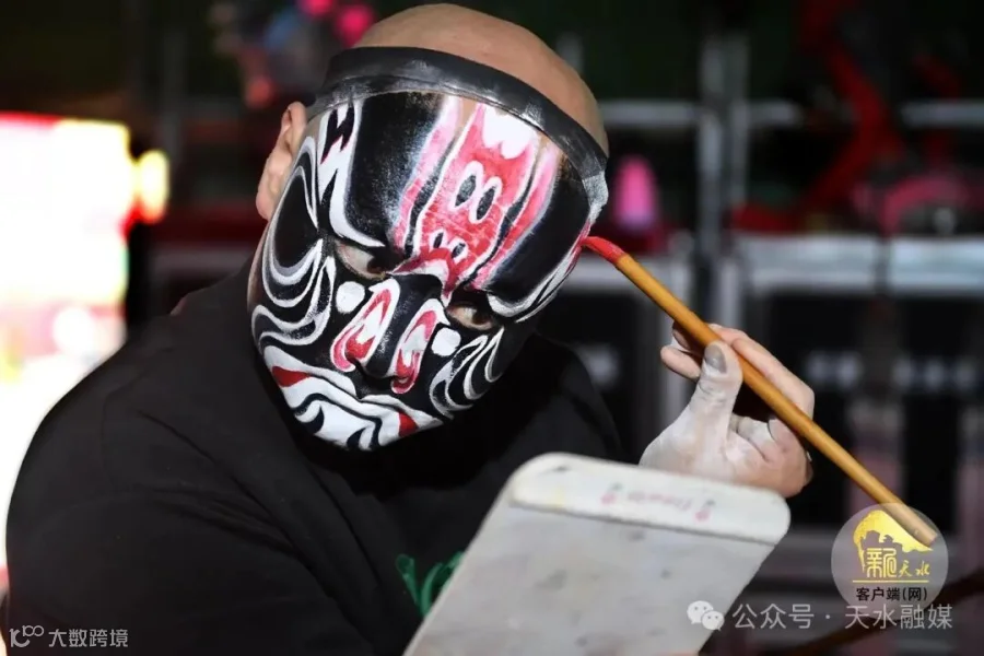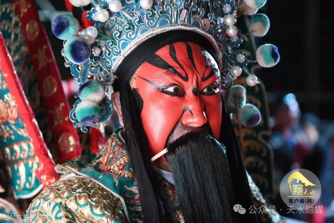 中午时分,广大戏迷提着马扎、板凳,从四面八方来到伏羲广场,看大戏过春节。舞台上,戏曲演员倾情演出,唱腔浑厚,曲声悠扬。在幕后,候场的演员精心妆造、准备行头。