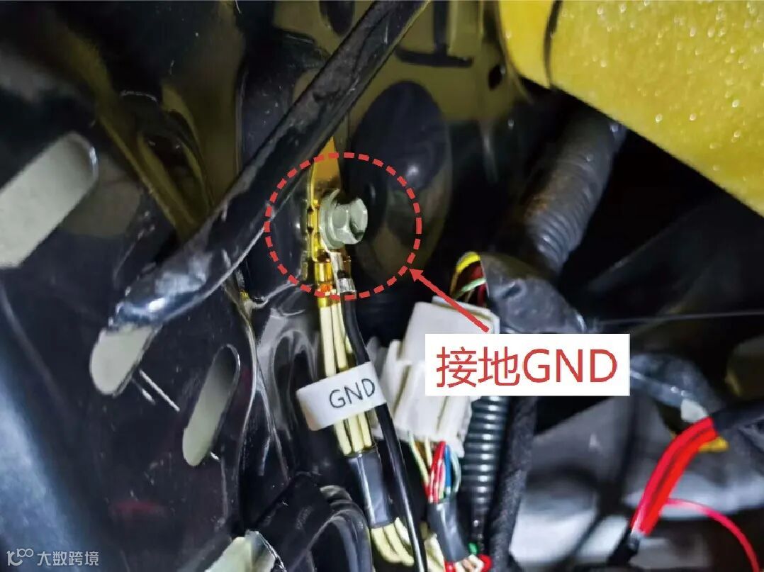 11.电源线优先接地线再接取电器,地线位置参考下图