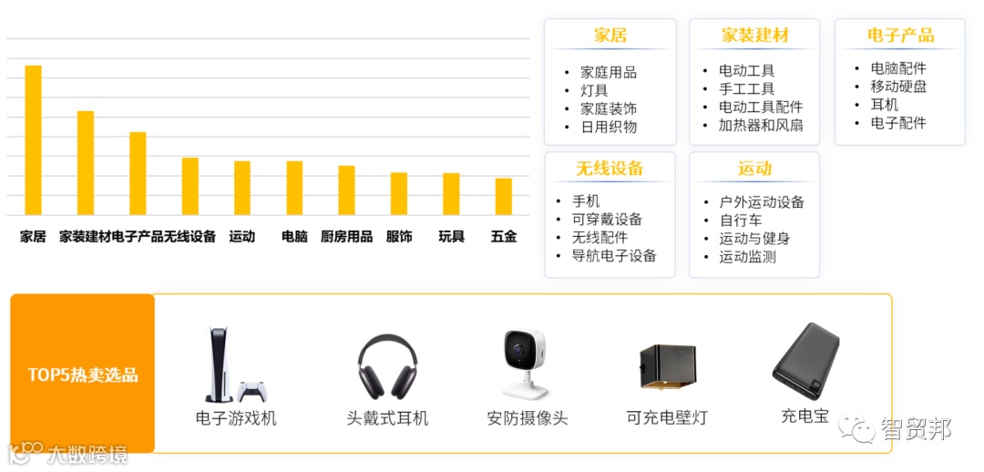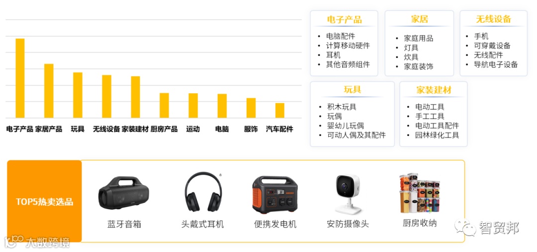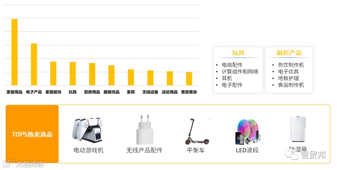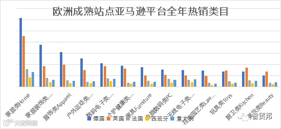 - 欧洲主要热销类目包括服饰、电子、家具、美妆、玩具等。
