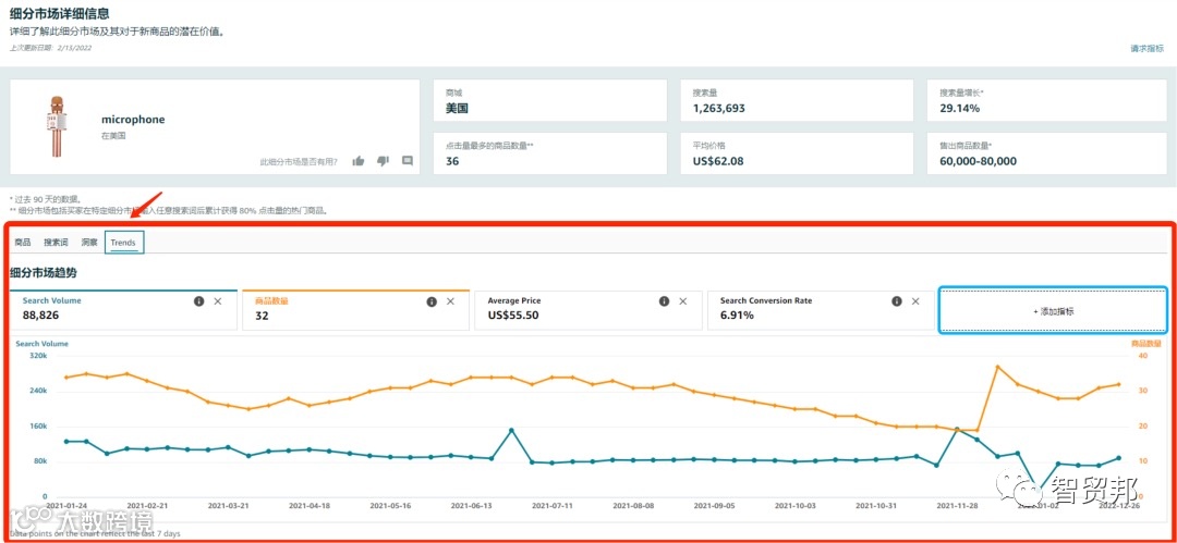 - (c) 市场洞察:展示目标市场的搜索量、点击率、热门关键词以及价格带、材料、颜色等关键数据,辅助卖家制定更精准的跨站点选品策略。