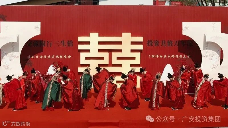 为践行国企社会责任,培育新时代婚育文化,5月20日,广安投资集团与广安交旅集团联袂打造“交旅同行三生情·投资共修万年缘”集体婚庆。活动精心构建家企共荣纽带,10组跨越三代的婚庆家庭(含新婚及纪念婚职工、职工新婚子女、职工纪念婚父母)以文明婚典诠释社会主义家庭新风尚,100余名职工、家属与市民共同见证这场穿越千年的文化盛典。