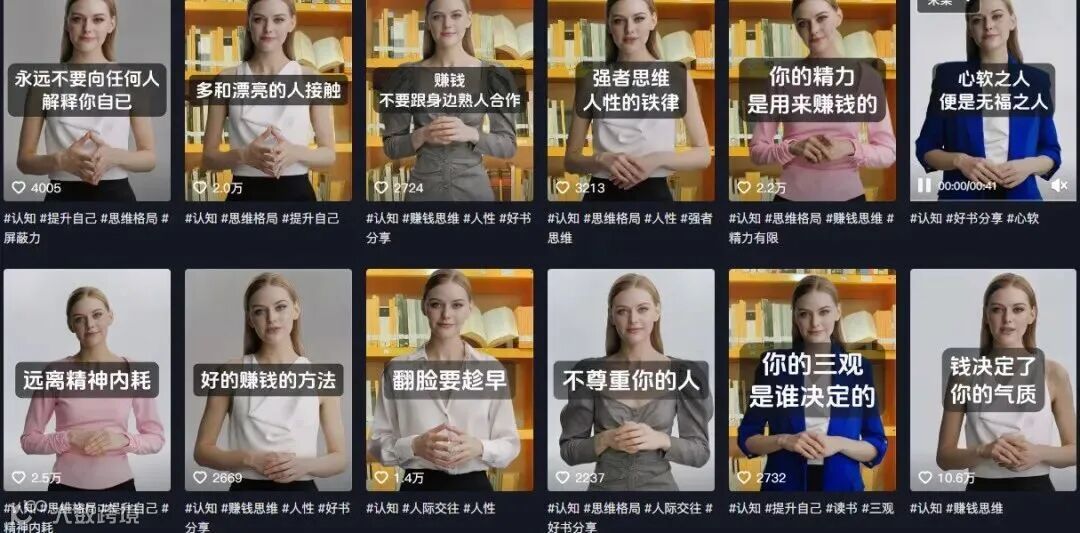 用AI生成动态动画,讲解哲学、职场技巧、经济学原理、情感科普等干货,前3秒用痛点反问抓牢观众。