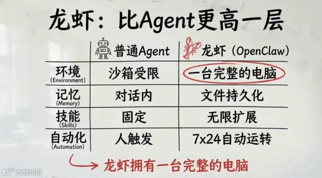 那么OpenClaw比Agent更高一层: