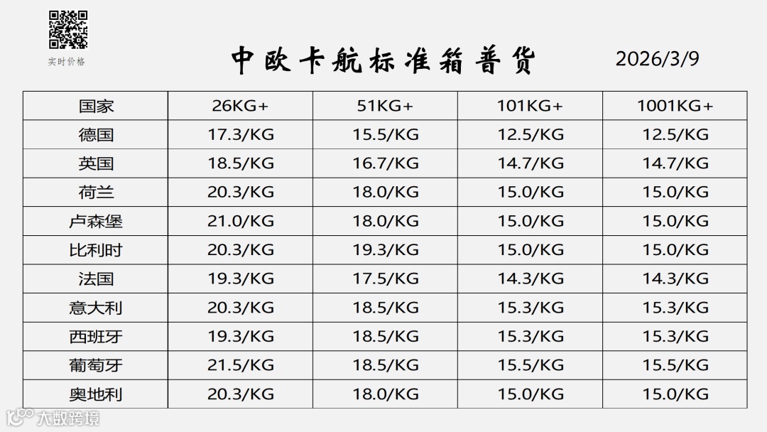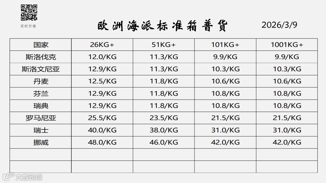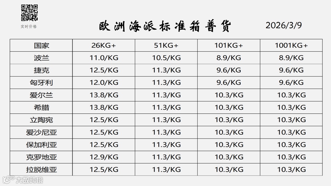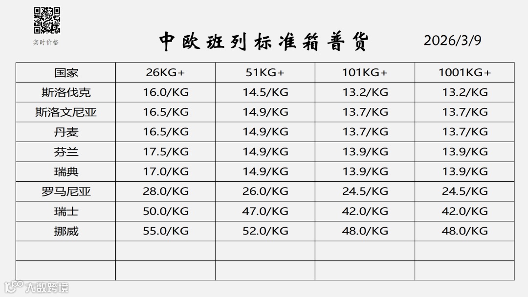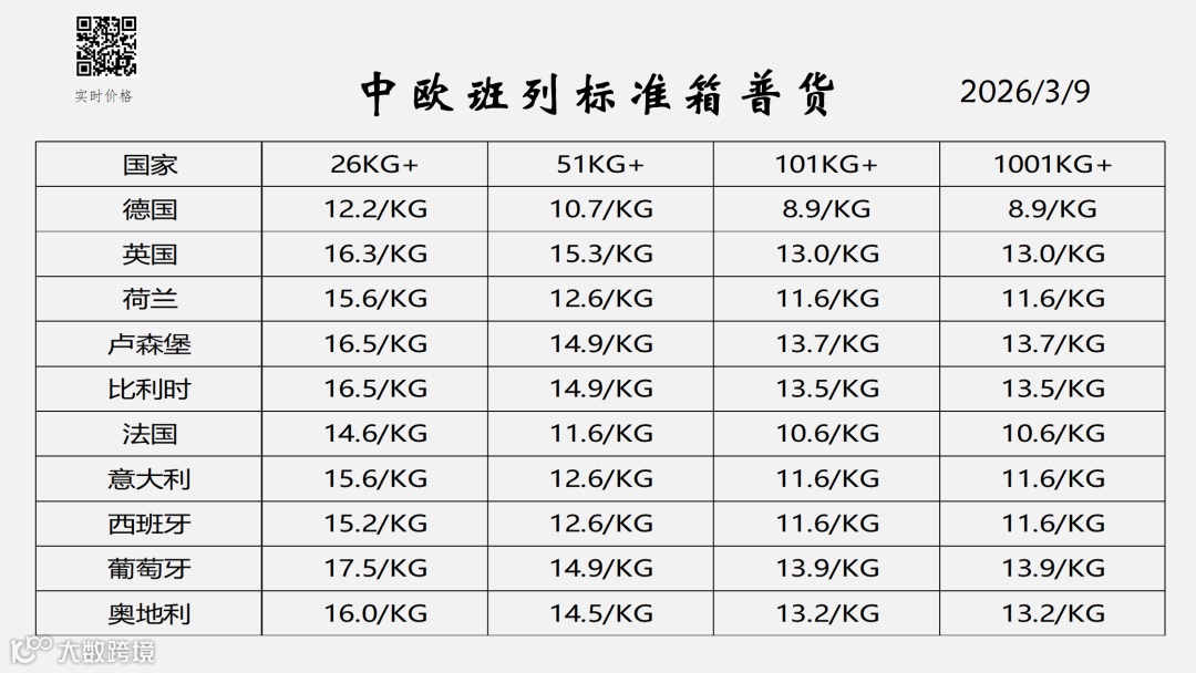 欧洲物流专线服务报价(2026年3月更新)