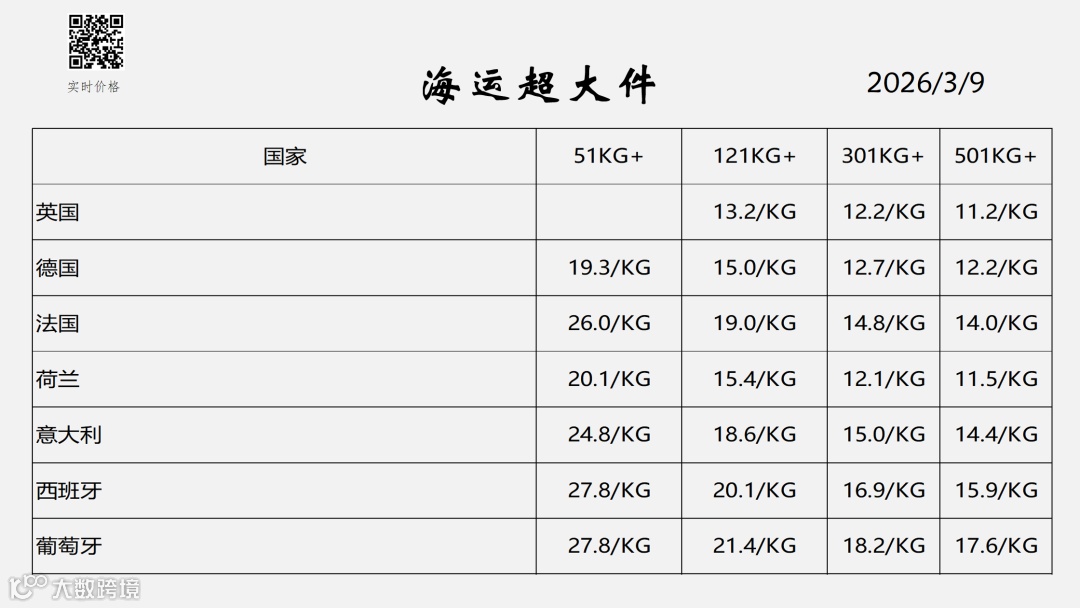 价格说明:非FBA地址+1元/KG,最低100元/票;单箱限重13–23KG;一票最多3个品名、一箱限1个品名;参考时效35–40天;普货包税;高税率或反倾销产品加收1–6元/KG附加费;首次入欧盟清关及关税由承运方代理,欧盟境内流转免二次清关;罗马尼亚、匈牙利等东欧国家如产生二次清关及关税,由收件方承担。